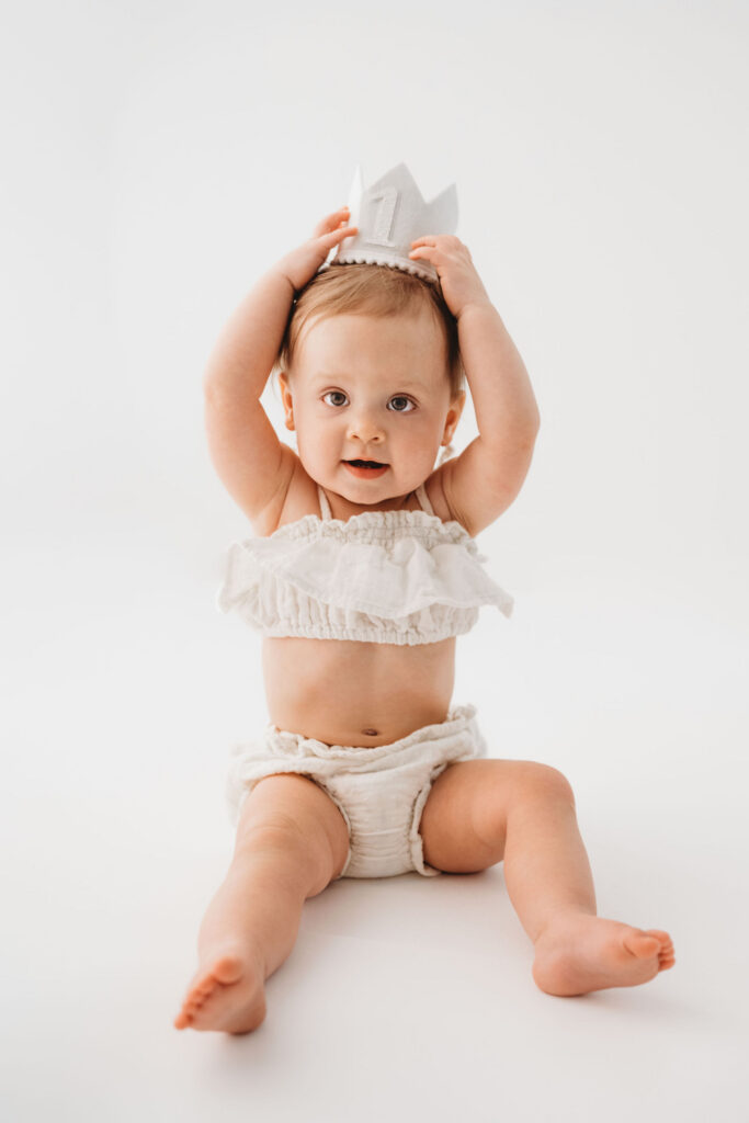 All first birthday and cake smash sessions take place in my studio in Southwest Cape Coral, just a short drive from Fort Myers and surrounding areas. The studio is calm and neutral so your baby remains the focus.